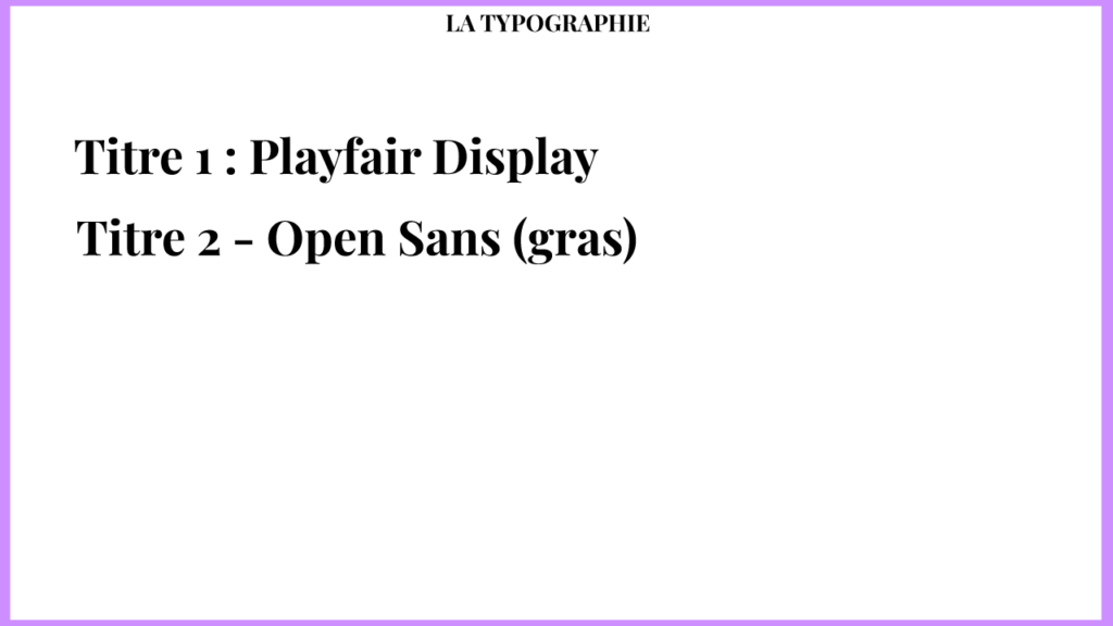 - Playfair Display pour les titres principaux : j’ai opté pour cette police serif élégante pour apporter du caractère