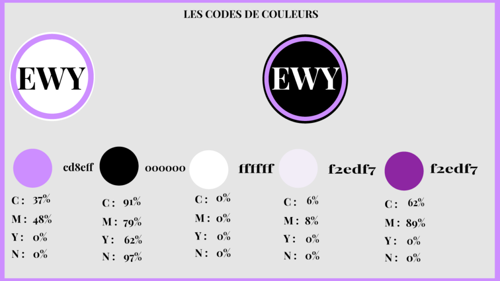 #cd8eff) que j’ai choisi pour apporter modernité et créativité - Un noir profond pour assurer le contraste et la lisibilité